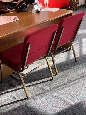 The folks at church are loving these chairs! They are sturdy and comfortable. The fabric is a bit brighter than expected but they look sharp in the livestream area where attendees can watch the church service. They are easy to stack when putting away. Just a warning, they do need assembled but that is an easy process. We ordered 20 and two people completed the assembly for all of them in less than an hour. This was a great purchase and I would definitely recommend these chairs.
