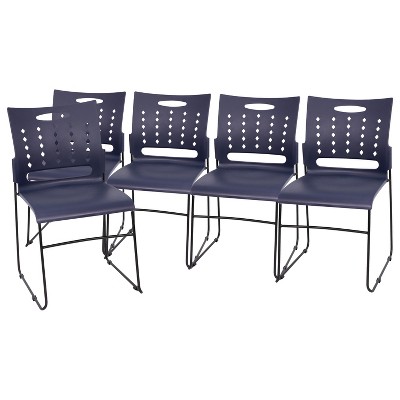 Flash Furniture HERCULES Series 661 lb. Capacity Navy Stack Chair with Air-Vent Back and Gray Powder Coated Sled Base