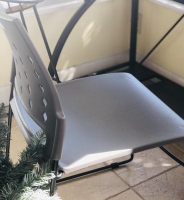 [This review was collected as part of a promotion.] The Hercules series Gray Sled Base Stack Chair with Air Vent back is a stylish and functional option for seating. It's a simple design that holds up to 881 lbs. The sleek hard plastic material makes it easy for cleaning and stacking. However, there are times when I feel like I'm sliding off from the front where there is a slight slope especially with certain clothing. This chair color is versatile and works with almost any decor.
