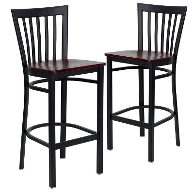 Product Name: Flash Furniture HERCULES Series Black School House Back Metal Restaurant Barstool - Mahogany Wood Seat