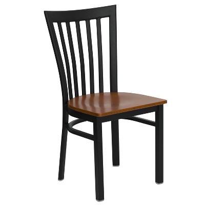Flash Furniture HERCULES Series Black Vertical Back Metal Restaurant Chair - Cherry Wood Seat