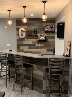 We are so happy with our new bar stools. They are so sturdy. They look amazing in our newly remodeled basement bar. We have gotten a ton of compliments. The shipment and delivery was excellent. No damage at all!