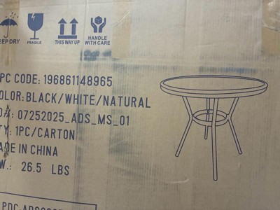 [This review was collected as part of a promotion.] This bistro round table is pure awesome. It is so beautiful and sleek. It holds up to 200 lbs, which is way more than enough. It is sturdy with metal legs and frames, which are painted with wooden finish that compliments perfectly with the bamboo mesh print underneath the glass top. The assembly is a little tricky, and I would recommend an additional helper. It is especially helpful to avoid scratching the glass top. Each individual component is meticulously wrapped to avoid damage during shipment. Overall, I am greatly satisfied with this table.
