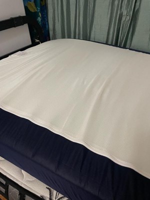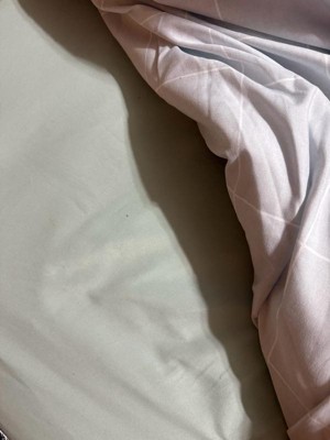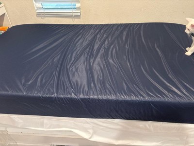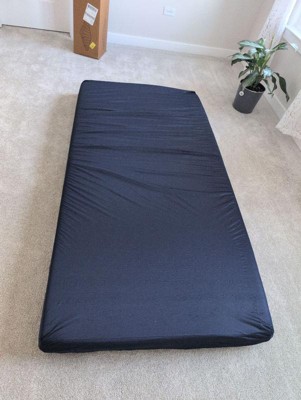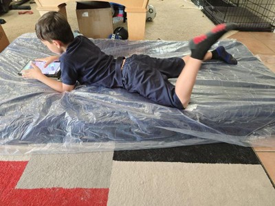[This review was collected as part of a promotion.] This mattress feels like you’re sleeping on a cloud. Straight out of the package it quickly puffs up and takes its shape back. It is easy to clean when my child has an accident and the waterproof cover fits nicely, it is not big, bunchy and too big like ones we had in the past. I also like the navy blue so there is no discoloration like with white.