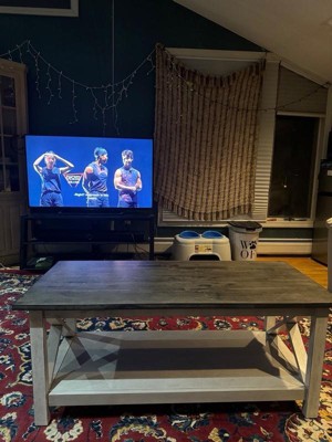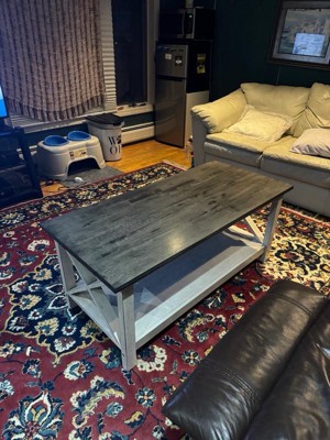 [This review was collected as part of a promotion.] This coffee table was the perfect coffee table for our living room! It is beautiful, and a great size without being too big or too small. Big fan of farmhouse style furniture. It’s nice that it has space under the table, so if we needed a place to put miscellaneous objects, although my preference would be to keep that clear. My fiancé is the one who put it together, who said it was fairly easy, and altogether probably took less than a half hour to set up. However, he said don’t grab a tape measure because the pre-scribed marked line on the back of the table top was not square. He was able to fix while putting together.