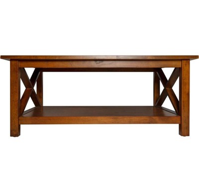[This review was collected as part of a promotion.] I love it!! Its stylish with a farm type design, the criss cross design looks perfect with my TV stand. Very easy to assemble, great quality, and very sturdy. Its long enough for magazines, and a centerpiece.
