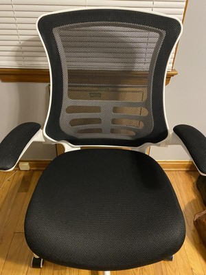 Flash Furniture Kelista Mid-Back Blue Mesh Swivel Ergonomic Task Office Chair with White Frame, Flip-Up Arms, and Transparent Roller Wheels