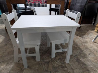 [This review was collected as part of a promotion.] With our great niece now a toddler, and more kiddos sure to come, we saw the benefit of having this table and chair set in our home. This set reminded me of the chairs we have in the preschool rooms at church. Those chairs have been there since before I was that age. Knowing that they have held up well for decades, I knew this solid wood kids' set would too. Most adults can sit on these chairs, without any worry of a weight capacity…being able to sit that low and still be able to stand up is a whole different story! It's a heavy weight, solid wood set. It is such a well-made piece and will last for generations. Putting it together didn't take long, though having an extra pair of hands to help made it easier. The size is just right for little kids. This set fits well in a corner of our great room. It gives us extra seating for kids, without having to set up folding tables. It’s also easy to clean, which is a must with toddlers. From prior experience with this style of kids' furniture, I have no doubts that it will be a set that will last.