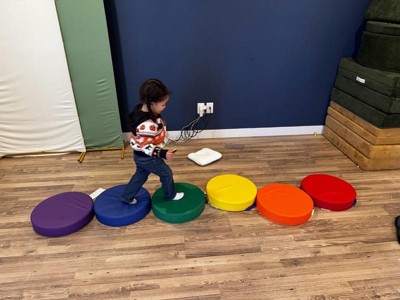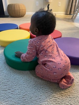 [This review was collected as part of a promotion.] Both my four and three year old have absolutely been obsessed with these colorful cushions since the moment I unboxed them. These are so versatile, great as little floor cushions, or for color recognition or even games. This has taken out floor is lava games to a whole new level of fun. The cushions itself are pretty thick, have a good soft plastic covering that makes cleaning them so easy as well as the little handles help the little hands grip them incredibly easy. Despite the cushion being thick they are pretty soft, so relatively safe if they get thrown around. Overall great product, that gets played with daily.