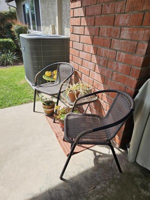 These chairs are attractive, light weight, stackable, and weather resistant. Perfect outdoor chairs. They even came completely assembled!