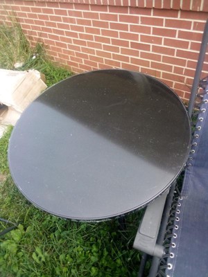 [This review was collected as part of a promotion.] This Mellie 31.5" Black round metal indoor outdoor table and stand is perfect on my porch between our two rocking chairs. Now I want to get the matching chairs for a cute little bistro set up on the patio.