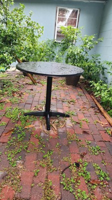 [This review was collected as part of a promotion.] Got this the other day and thisnis probably the easiest table to assemble, literally took me 10 minutes. It very sturdy and heavy so when i put it outside i wasnt worried about it being thrown by florida storms. I put it in my back yard and now its my goto spot to have drink my coffee or have lunch on the weekends. Its been raining here for the past week and the table is perfectly fine, nothings peeling or swelling so its definitely a high quality table made with premium materials. 10/10