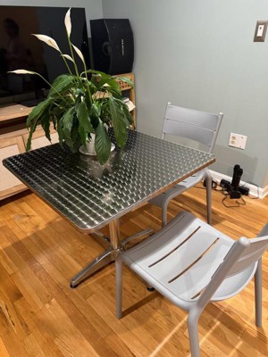 [This review was collected as part of a promotion.] I really like this table for both indoor and outdoor use. The aluminum construction feels sturdy and well made, and the base keeps the table stable even on uneven surfaces. The square size is perfect for small spaces like a patio, balcony, or kitchen corner. It’s lightweight enough to move around easily, but still feels durable and secure. Assembly was simple and didn’t take much time. Overall, it’s a versatile and practical table that looks clean and modern.