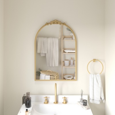 I really enjoy my James Allen arched mirror. It is a great accent for the arched design in my vanity cabinet. The gold trim is a perfect match for my brushed brass bathroom fixtures.