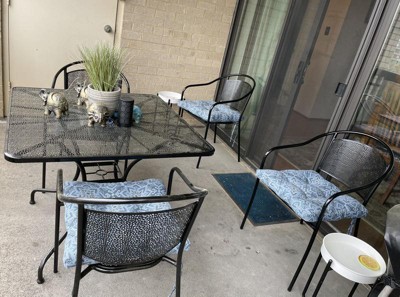 Flash Furniture Oia Commercial Grade 35.5" Square Sky Blue Indoor-Outdoor Steel Patio Table Set with 4 Round Back Chairs