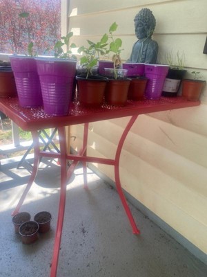 [This review was collected as part of a promotion.] Much bigger than I thought it was going to be! A great side table for any outdoor event or just lounging around. It’s super sturdy steel that doesn’t wobble. Some assembly is required, but it went together very quickly. I am super excited about this piece!