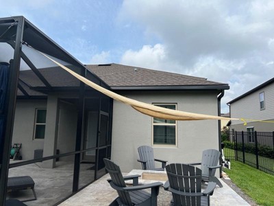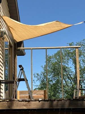 [This review was collected as part of a promotion.] Perfect little sunshade. Love the quality and the rings on the end for end to end installation. Pretty versatile size to put anywhere- I could also see a couple of them together to make different shapes and of course add more shade!