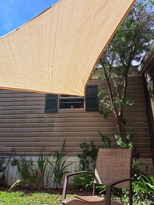 [This review was collected as part of a promotion.] The Palmetto Triangle Sun Sail Shade Canopy is made of durable material that provides excellent shade coverage. Its size is perfect for various outdoor spaces. The installation process is straightforward, making it easy to set up. In terms of durability, it can withstand different weather conditions.