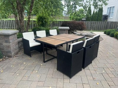 We absolutely love this table! Was easy to put together and the quality is great. Very well made and sturdy. I love how compact it is, chairs fold down easily and slide under the table for storage. Holds 6 adults comfortably. It looks great on our patio!
