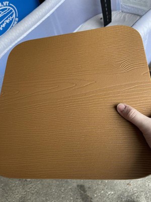 [This review was collected as part of a promotion.] This Perry Poly Resin Wood Square Seat for metal barstools seems durable as it's made of thick polystyrene composition. I like that it mimics the look of wood but it doesn't rot, chip or peel. It was easy to install.