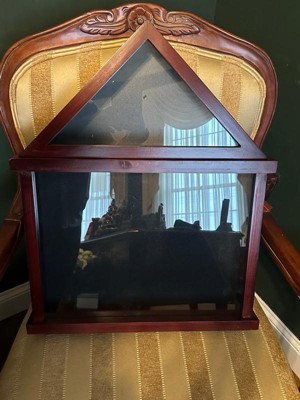 [This review was collected as part of a promotion.] This is a very nice display case. The wood is nice, and the frame is sturdy. It fits a flag nicely once folded. It's nice to display military certificates or memorabilia.