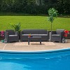 If you enjoy spending time outdoors, you have to make it cozy as if you were sitting in your living room, kicked back. Add this faux rattan dark gray coffee table to your outdoor seating arrangement to anchor your look and pull it all together. This lightweight patio table will look handsome on your patio or deck, offering up a place to put your drinks or plate. The table top features a plank design with woven rattan bordering. Offering up much style, this accent patio table will complete your outdoor living space. Additional Features: Clean with Water Based Cleaner