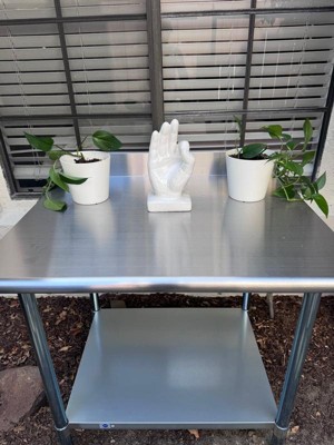 [This review was collected as part of a promotion.] I was so excited to receive my kitchen prep and work table this week! Thankfully I was home and the garage door was open so it was delivered right into my garage. As expected the box was large and heavy so the garage was the perfect place to unpack and put it all together. After getting the hang of using both ends the Allen wrench I was able to get the legs installed quickly. I did need a little help installing the shelf and tightening the screws so that the shelf was level. I am very impressed with the quality of the stainless steel both in the weight and durability. My husband does alot of smoking and grilling and I feel we will get much use when preparing meat for the smoker, use as a serving table or even a margarita station when hosting friends. The fact that we can buy and install wheels on the legs makes it even more versatile and is definitely on our to do list to make it easy to move from inside to outside by the grill when hosting a party. . Clean up is easy and the stainless steel is rust resistant. We like to host many get togethers and feel like we will get a lot of use with our kitchen prep table. Definitely a win win for us!!