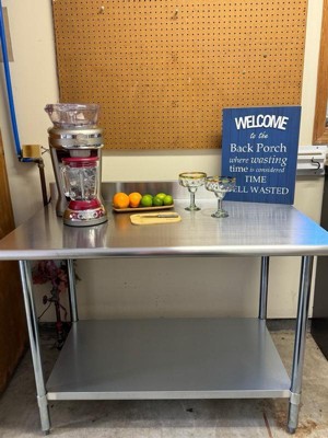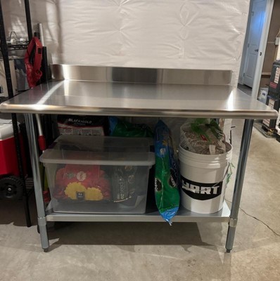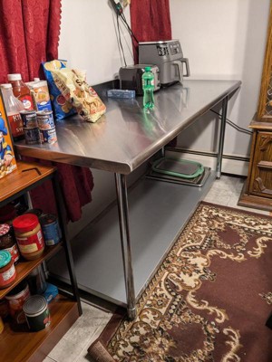[This review was collected as part of a promotion.] If you are needing a prep table this is it! We had it together in less than 20 minutes, it's sturdy! The top can hold 600lbs the bottom shelf 200lbs. It's stainless steel so it's easy to clean and keep germ free.