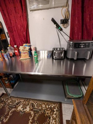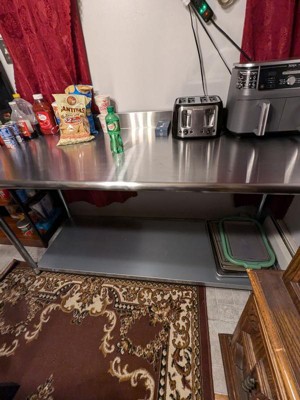 [This review was collected as part of a promotion.] I’ve been using this table in my kitchen for a few weeks, and it's been a solid addition. The 430 stainless steel construction feels durable, and it easily supports heavy kitchen equipment. The surface is smooth and easy to clean, and the table remains stable even with constant use. Assembly was straightforward, and it fits well in a commercial setting. Overall, it's a high-quality work surface that’s built to last.