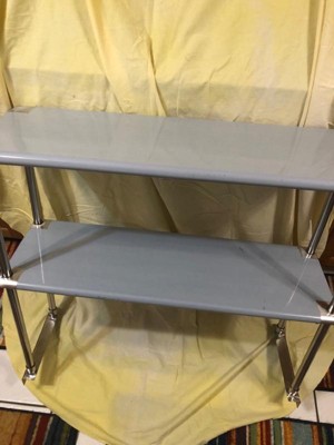 [This review was collected as part of a promotion.] I love this Reese Commercial grade 18 gauge shelf. It took about 30 minutes to put together. The shelf is heavy duty stainless steel. It has a 2 tier which has a great amount for storage. I love that the color is kinda of lavender instead of a grayish color. I'm going to spray a rust paint on it and hold some of my plants on it. There's so many ways people can use this shelf. I love it! I would highly recommend this product!