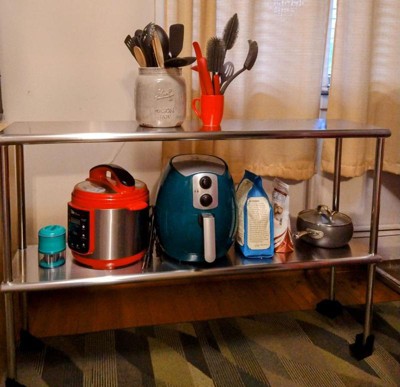 [This review was collected as part of a promotion.] I turned mine into a shelf! It’s really nice quality, commercial grade stainless steel. It was easy to put together and I can put a lot of things on it.
