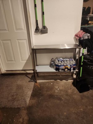 [This review was collected as part of a promotion.] I received this exceptional 430 stainless steel 18 gauge kitchen double shelf. We are in the process of building a pantry. We have decided to use this in our pantry once completed. Right now we are using it on our spare bedroom. This is made really strong and durable. The shelves will hold up to 110 pounds which is impressive We are going to use this to hold our appliances, kitchen essentials and pantry items. This was really easy and quick to put together. These shelves will help keep our kitchen neat, clean and organized. Highly recommended for anyone with a large commercial kitchen, pantry or in need of storage.
