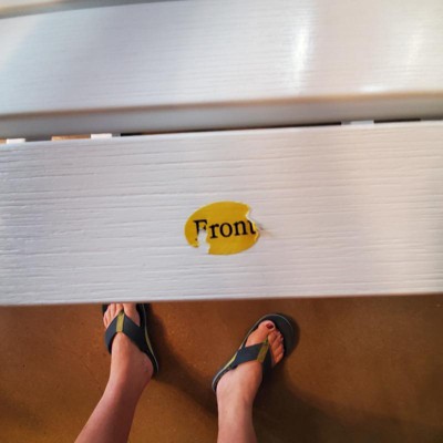 [This review was collected as part of a promotion.] Ordered this rocker for the design (& additional seating, when needed). Didn't expect it to be such a comfortable chair. I usually have issues with rockers leaning too far back (I'm 5'2" so my feet don't touch), but THIS CHAIR is leveled correctly in that my feet are on the floor. The only issue -- my peeve, I guess -- is the stickers put ON TOP of the item that I think could easily be put under the piece so that if stickers don't easily remove, you don't mar the face (surface) removing them.