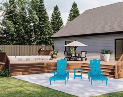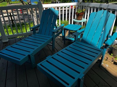 [This review was collected as part of a promotion.] I absolutely love my new 3pc Adirondack set! The quality of the material is top-notch and really gives off a luxurious feel. It's clear that this set is built to last for years to come. Although it did take some considerable time to assemble, the end result was definitely worth it. The pieces fit together perfectly and are incredibly sturdy. The loungers are so comfortable to relax in and the side table is the perfect addition for holding drinks or snacks. I have received so many compliments on this set already and can't wait to spend many sunny days lounging in my backyard. Thank you for providing such a high-quality product!