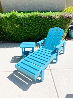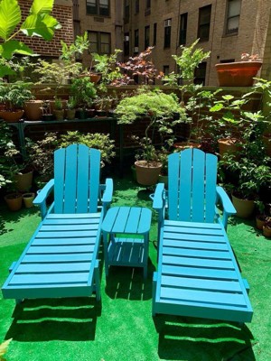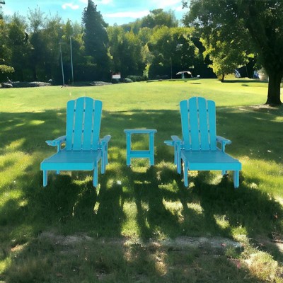 Flash Furniture 3pc Commercial Indoor/Outdoor Adirondack Set with 2 Loungers, Side Table in Blue
