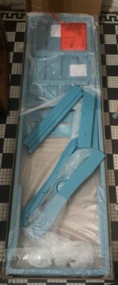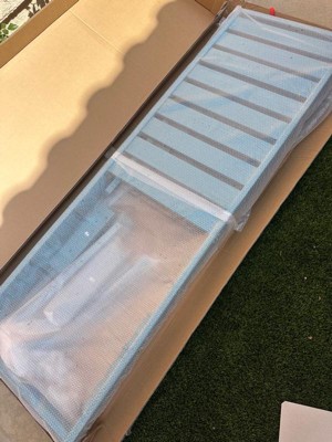 [This review was collected as part of a promotion.] There’s nothing better in the city than having your own rooftop oasis garden to escape to, and these loungers are the star of the show! I was shocked at how large (and heavy!) the boxes were when I went to pick them up, but I got them on a rolling cart and navigated them easily enough. I would NOT have been able to get each box up the stairs to the roof by myself, though. Luckily, they were easily opened and each individual piece was easily movable. Assembly was very easy; the only slight hiccup was when I accidentally attached one of the legs facing the wrong way. Pay close attention to the diagram! And perhaps keep a straight edge or yardstick nearby, so you can hold it against the feet to make sure they line up. I do wish the legs came with a “this end up” sticker though. The loungers themselves are quite comfortable, thought I will probably be acquiring cushions for them in the future. I’ve already gotten some lumbar pillows for my neck and back, and that should last me fine until I find a larger cushion with a pattern that matches the bright cheerful blue.