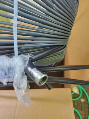 Both chairs came with paint peeling off and bare metal visible (rust in future) Not boxes were damaged One of the chairs missing a leg, and has deep abrasions (scratches) on plastic rope wreaking it. I doubt they will survive beyond next summer. Other than that they are beautiful.