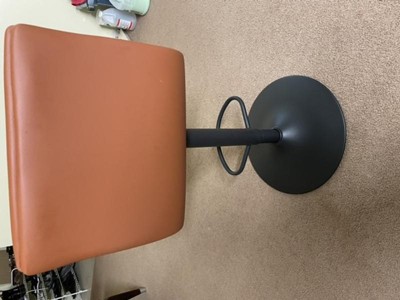 Just got this stool. The height adjusts easily. It’s not the heaviest stool so just be careful when getting out of it. It’s also a narrow seat - about 16” wide, so be aware of that before ordering. The padding is comfortable and the foot rest is great. I got the orange color and love it!!