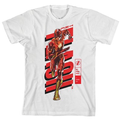 • GRAPHIC TEE: The Flash goes on a superspeed run on this graphic tee A yellow bolt of lightning extends from his hand to show the hero's speed. This t-shirt makes a great gift for young fans of The Flash.