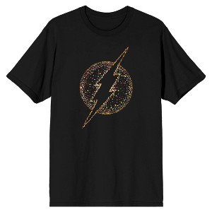 Celebrate the superspeed legend with this Flash tee. The shirt features the hero's logo of a lightning bolt inside a circle. Both the lightning bolt and the circle have a blakc background while the outline is traced with yellow dots. The tee comes in a black short sleeve crew neck. Bring your style up to speed with this Flash tee today.