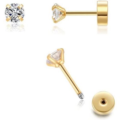 Flat Screw Back Stud Earrings, Small 2mm - 4mm Gold Color for Helix Cartilage Tragus Earlobe Piercing for Women - 1 of 3