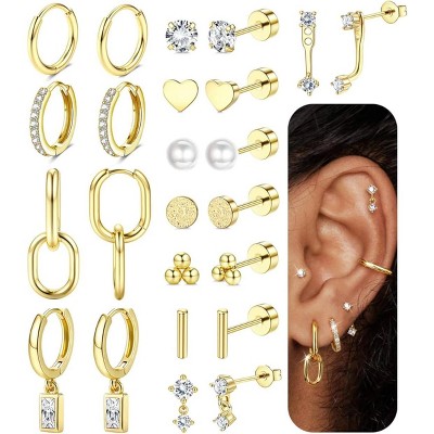 Flat Screw Back Stud Earrings, Small 2mm - 4mm Gold Color for Helix Cartilage Tragus Earlobe Piercing for Women