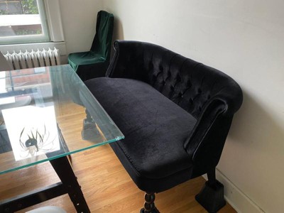 Flax Victorian Style Contemporary Velvet Fabric Upholstered 2 Seater Loveseat Black - Baxton Studio: Elegant Polyester, Tufted Design, Wood Frame