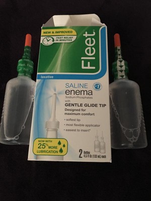 [This review was collected as part of a promotion.] Fleet Saline Enema was easy to use. It has a gentle glide tip that helped make the process more bearable. It was effective and did work quickly. It also comes with two bottles so I thought that was a good deal as well.
