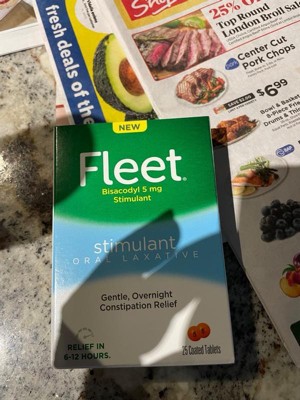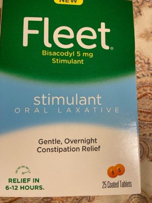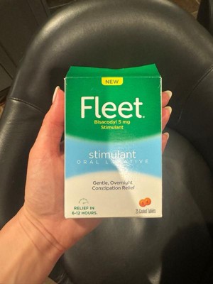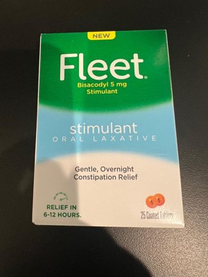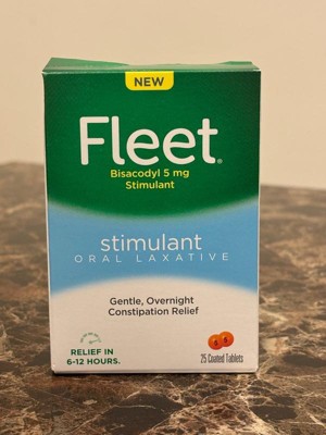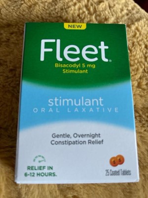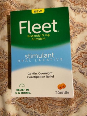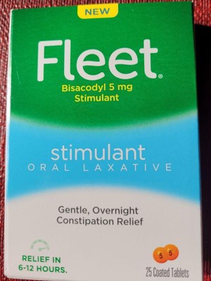 [This review was collected as part of a promotion.] Fleet Stimulant Oral Laxatives are a great and effective treatment for constipation. It comes in a small package and has a 25 pill count which is a great value for laxatives. I had no side effects and keep this stocked in my medicine cabinet.