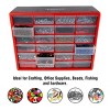 - With 24 compartments housed in a frame, this organization and storage cabinet is ideal for holding many types of items, including fishing tackle, office supplies, nuts, screws, and bolts, crafting materials, beads, makeup, and jewelry