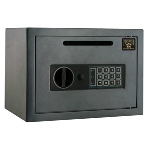 Protect your cash or documents with the Electronic Safe Deposit Box by Paragon Safes. This password protected money lock box is ideal for your home or business, designed with a front deposit slot so you can safely store cash or coin bags. The cash safe box can be mounted to the floor or wall for added security and comes with two manual override keys so that you can always retrieve your money out of the small lock box safe when needed.