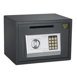 Protect your cash or documents with the Digital Deposit Safe by Fleming Supply. This password protected money lock box is ideal for home or business and is designed with a front deposit slot so you can safely store cash or coin bags. The cash safe box can be mounted to the floor or wall for added security and comes with two manual override keys so that you can always retrieve your money out of the small lock box safe when needed. Rest easy knowing that your valuable assets are protected with this money safe deposit.