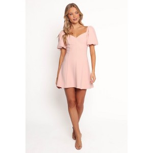 Turn heads with the Fletcher Mini Dress in soft pink, a must-have staple for your wardrobe. Designed with a chic sweetheart neckline and charming short puff sleeves finished with elasticized cuffs, this dress blends timeless elegance with a playful twist.