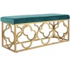 Enhance your living space with the Fleur Rectangle Bench in Emerald Velvet and Gold. This elegant piece combines rich emerald fabric with a metallic gold frame, creating a stunning visual contrast. Designed for both style and function, the bench provides an inviting place to relax while serving as a captivating focal point in any room. The luxurious fabric adds a touch of softness, and the metallic structure ensures durability, making this piece a stylish addition to your home. Whether placed in a living room, hallway, or bedroom, the Fleur Rectangle Bench brings a touch of sophistication to your decor with its blend of fabric and metal artistry. Enjoy the remarkable design and make a statement with this exquisite bench.